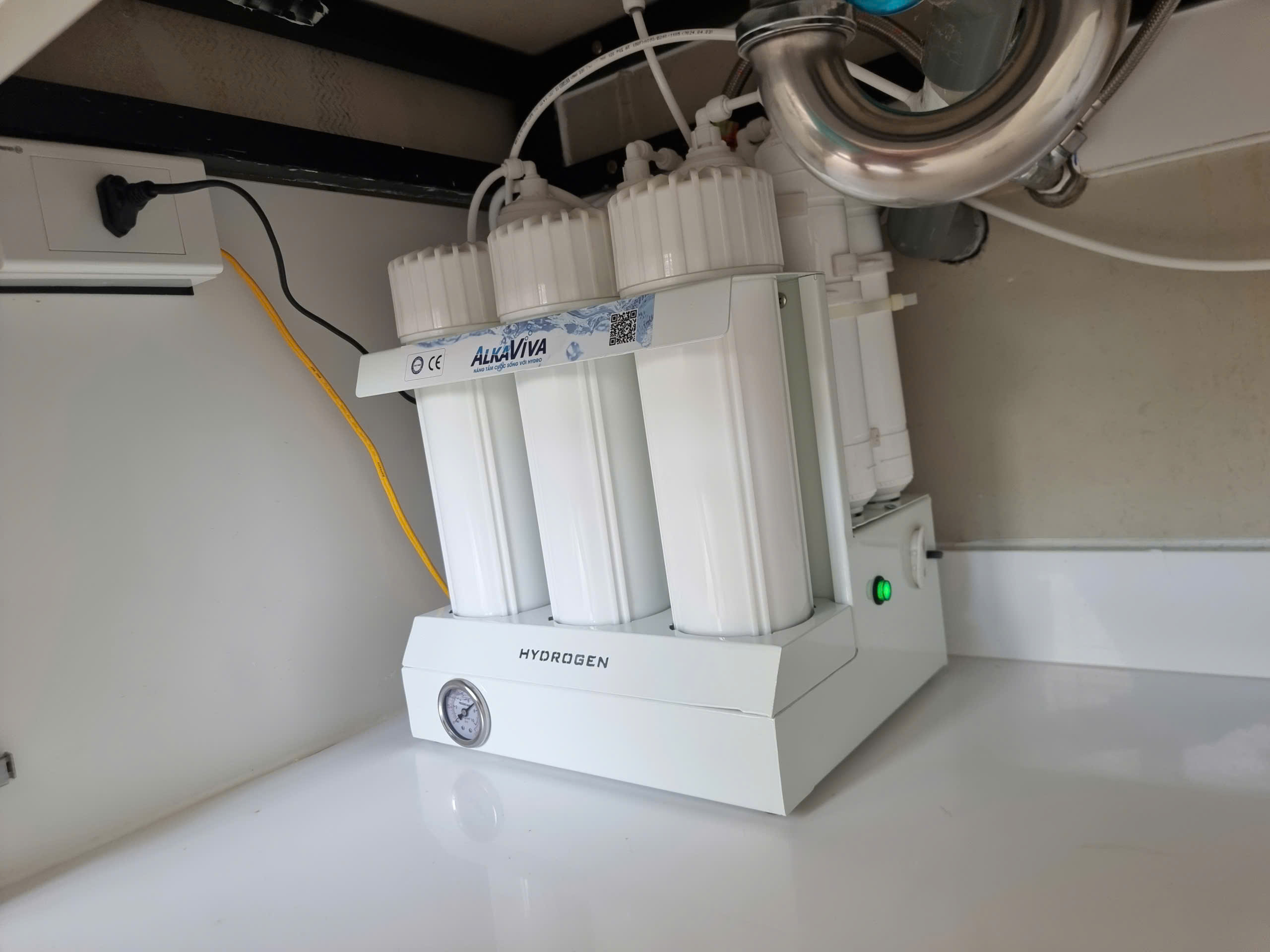 Bộ lọc thô tạo nước Hydrogen AlkaViva cho bồn rửa mặt là hệ thống lọc nhỏ gọn tích hợp, thường đặt dưới bồn hoặc trên bàn, có các lõi lọc thô (PP, than hoạt tính…) loại bỏ cặn bẩn, tạp chất, sau đó nước đi qua lõi tạo khoáng/kiềm/Hydrogen, cụ thể